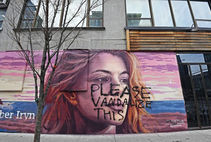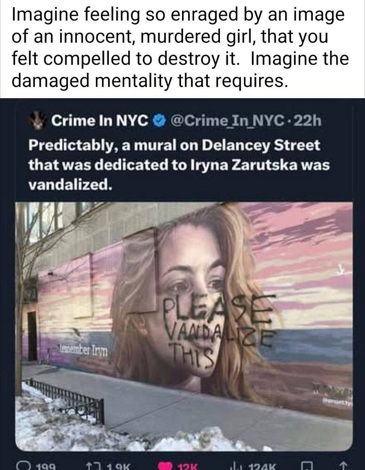 Iryna Zarutska — I’ve written several essays about her — was brutally murdered by an Emotionally Disturbed Felon while minding her own business. Someone touched by this senseless tragedy decided to immortalize that poor girl with a mural.