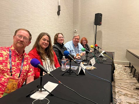 Lastly: Have limits, follow those limits, and prepare for those limits. One of my cardinal rules is that I will absolutely not carry a firearm if I’m drinking alcohol. If we’re headed for a bar after the normal con schedule, I’ll put my pistol in a flat, locked box which goes under the mattress in my hotel room; and replace it with a small fixed blade knife mounted horizontally on my belt.