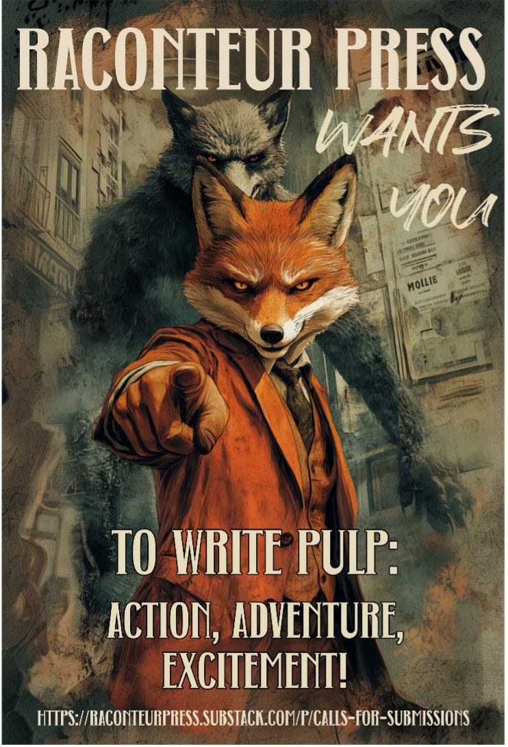 We’d like to remind everyone that we start our absolutely bug-nuts insane publishing schedule1 for 2026 in about a month, and if you’d like to help out our scrappy little press — we need fans. People buying our books is how we pay our authors, and our staff2, so if you could pass the word about Raconteur Press — and expand our readership — we’d take it kindly.